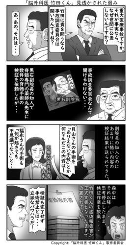 市民病院 らつ腕弁護士の不破は、すぐに赤池市民病院の弱みを見抜いた。 「重大事故を連発させているなら、なぜ公表しないのか?事故調査委員会はちゃんと開いたのか?」 院長は焦る。そもそも、竹田くんの一連の医療事故とまともに向き合えるわけがないのだ…