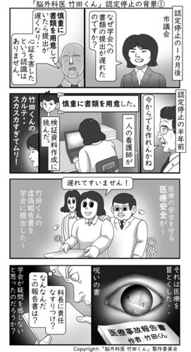 認定停止の1カ月後、市議会にて認定停止についての質問が為された。病院の管理者「資料を慎重に用意していたら提出が遅くなった。それで心象を害したという認識はありません。」 認定停止の半年前、院長と看護師が病院の窮地を救おうと苦戦していた。脳外科…